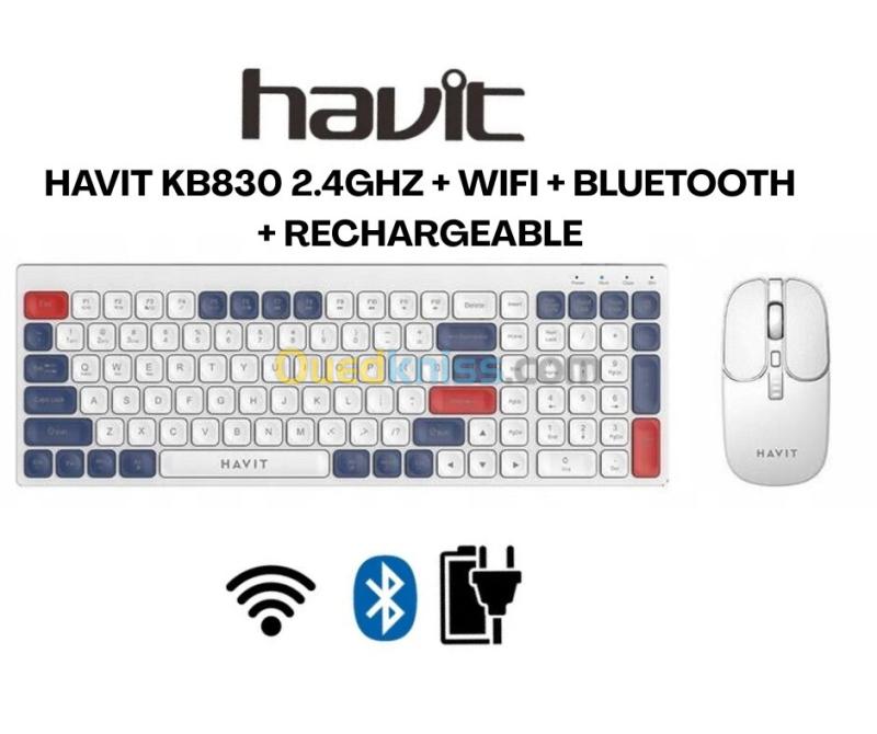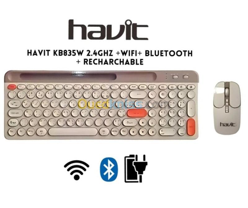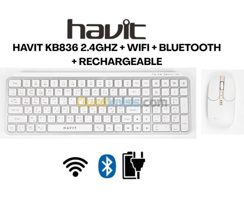 HAVIT COMBO CLAVIER SOURIS SANS FIL RECHARGEABLE 2.4/BT/ modele KB835WB KB836WB KB830WB