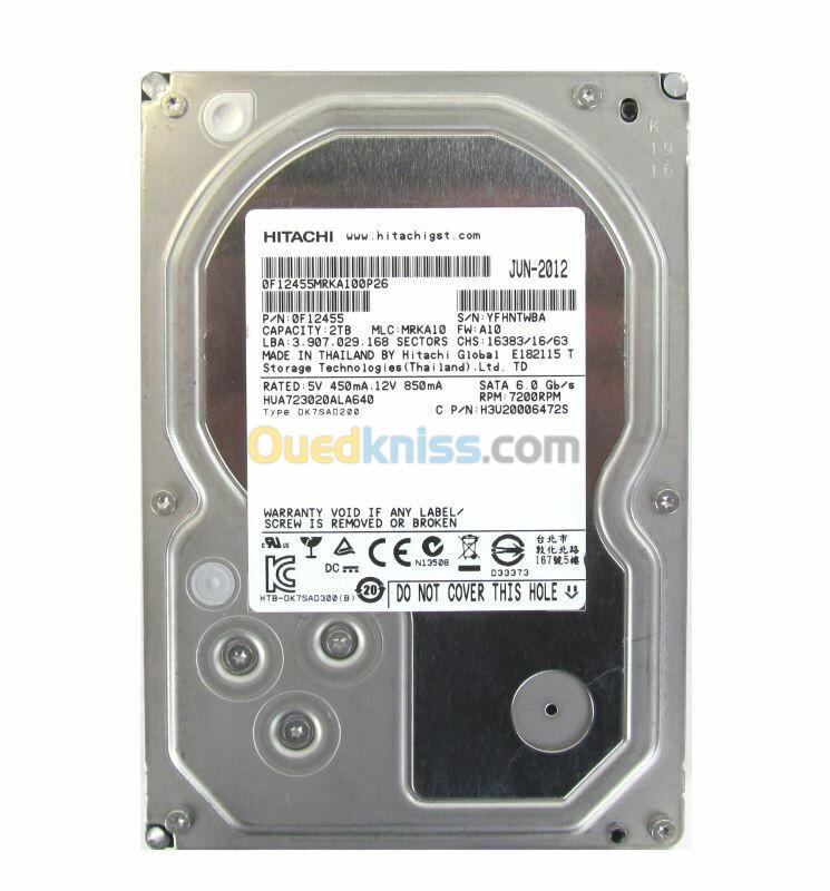 DISQUE DUR INTERNE HITACHI 2TB 3.5" HUA723020ALA640 utilisé